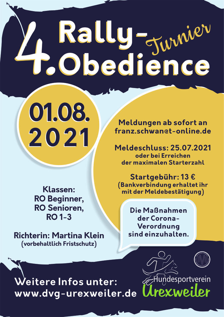 Am 01.08.2021 findet unser 04. Rally-Obedience Turnier statt.